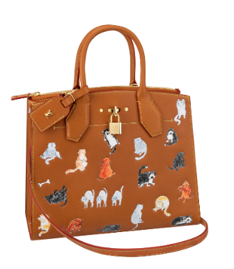 纵观 Catogram系列,创意魅力与路易威登的精细工艺交相辉映:手袋帆布内衬处饰有 Grace的签名与小老鼠印花;每一只旅行箱吊牌均经过一丝不苟的染边处理。该系列中的 Cats On皮具以栩栩如生的彩色动物图案呈现于压纹天然皮革上,另辟蹊径地探索奢华内涵,为新经典包袋(如 Petite Malle与 City Steamer )与标志性的经典包袋( Speedy与 Neverfull )增添新鲜感。除此之外, Catogram羔羊毛毯与锦纶雨衣也充满了鲜明的时尚个性。该系列以全新的视角解读优雅:手袋上慵懒侧卧的小猫与甜蜜微笑的小狗造型可爱俏皮;真丝睡衣则展现出时髦前卫的强烈风格。