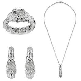 Gucci Dionysus系列的三款首饰,以18K白金打造并饰以圆形切割钻石,再攀奢华新高度。