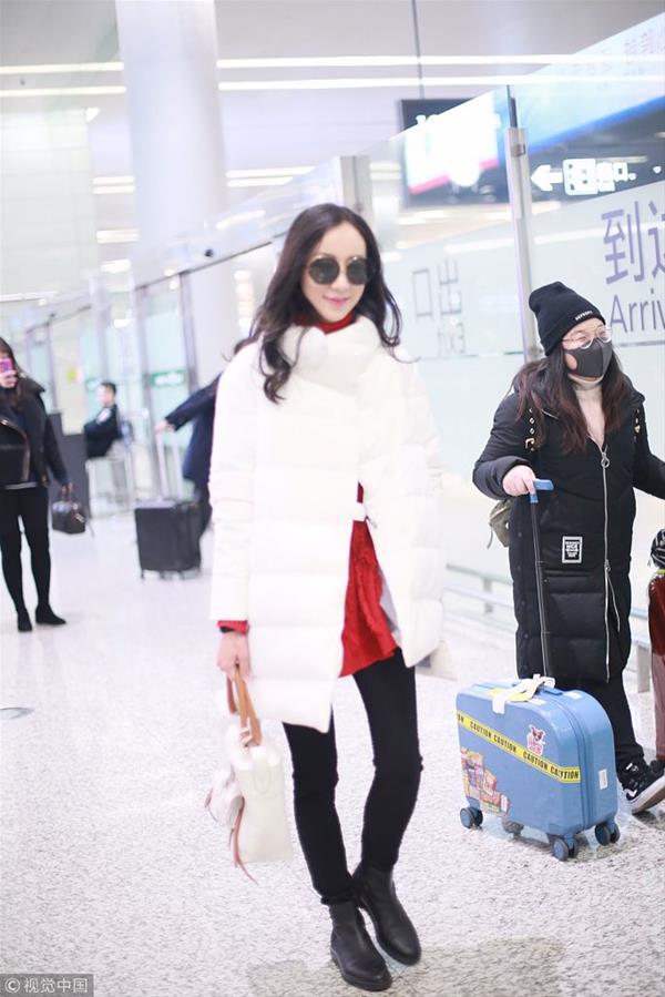新华网2019年1月8日讯 2019年1月7日,韩雪现身机场。(图片来源:视觉中国)