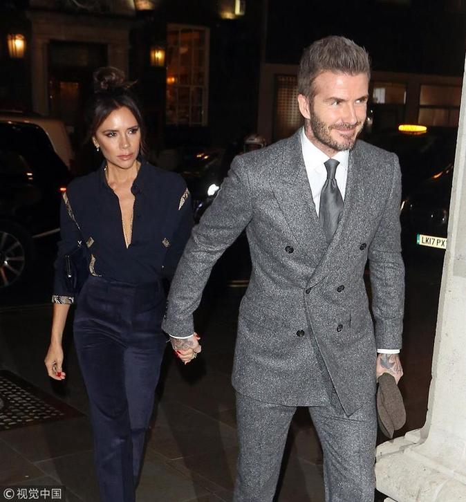 新华网2019年1月8日讯 2019秋冬伦敦男装周GQ晚宴,贝嫂全黑look霸气,小贝牵手甜蜜依旧。(图片来源:视觉中国)