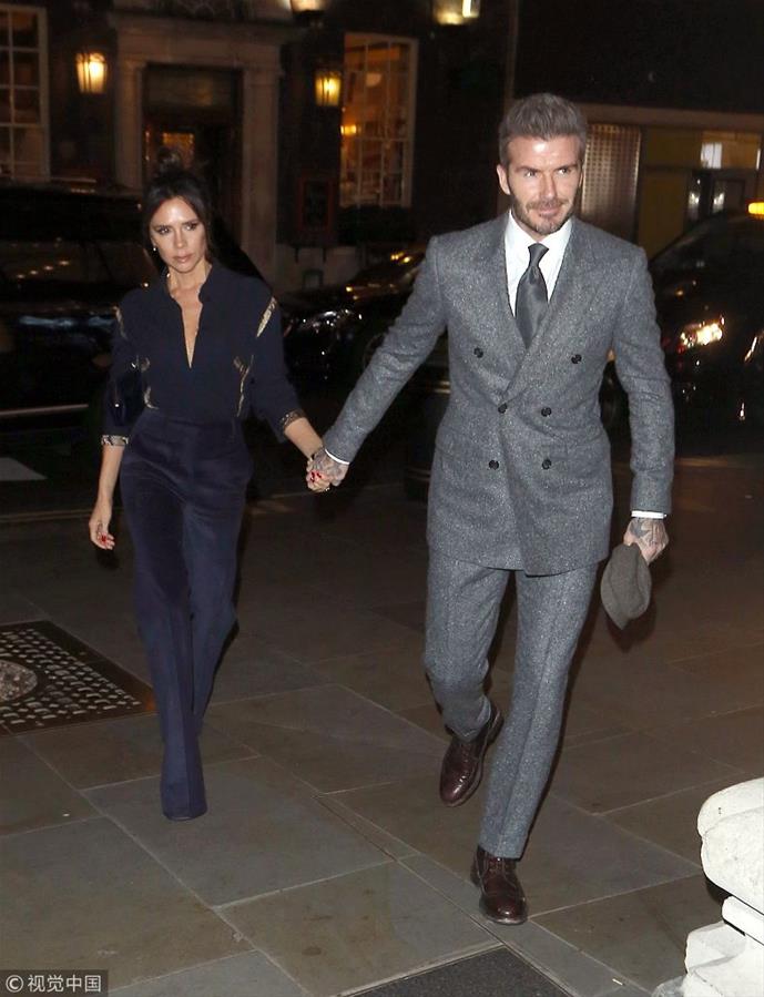 贝嫂全黑look霸气 小贝牵手甜蜜依旧