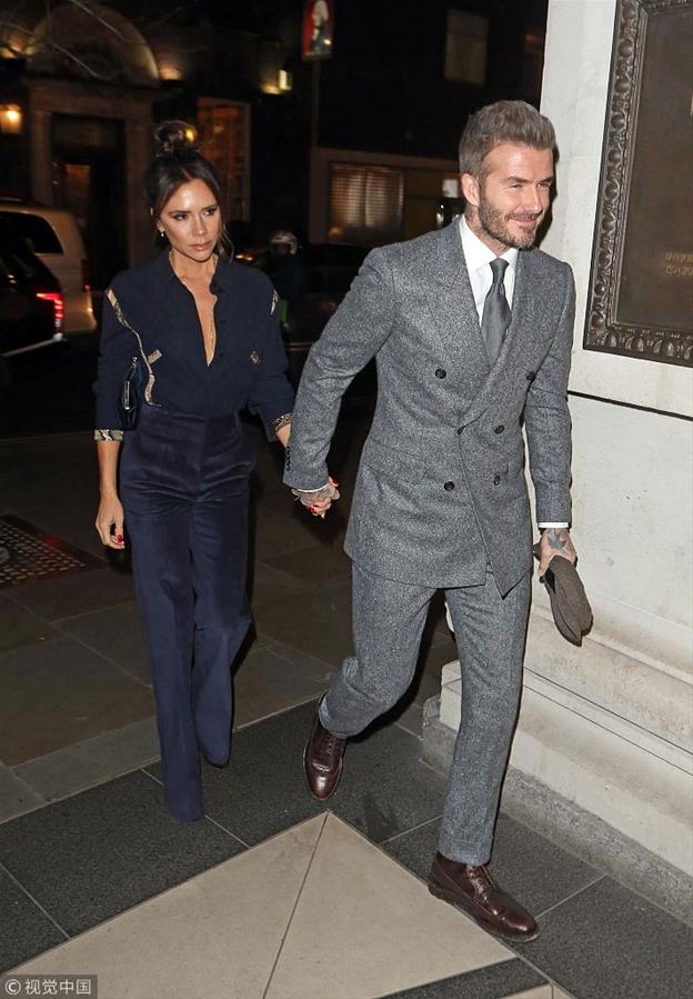 贝嫂全黑look霸气 小贝牵手甜蜜依旧