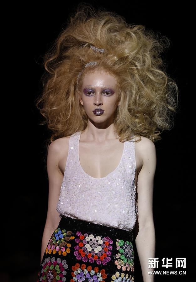 新华网2019年2月18日讯 2月17日,在英国伦敦,模特在2019伦敦秋冬时装周上展示Ashish品牌服饰。新华社记者韩岩摄