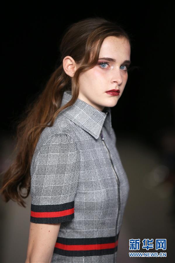 新华网2019年2月15日讯 2月13日,在美国纽约,模特展示Vivienne Hu品牌时装。华裔时装设计师胡媛媛创立的Vivienne Hu品牌13日在2019纽约秋冬时装周发布新品。新华社记者秦朗摄