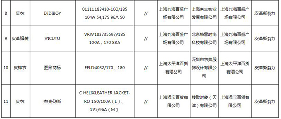 2018年上海市皮革服装产品质量监督抽查不合格产品