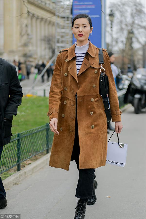 新华网2019年3月1日讯 当地时间2019年2月28日,法国巴黎,2019秋冬巴黎时装周:刘雯街拍。 (图片来源:视觉中国)