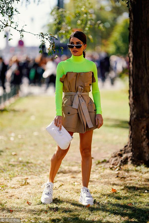 新华网2019年3月6日讯 现在说起2019流行色,荧光色绝对是大势!荧光色的驾驭难度实在太高了。可是你看近期吉吉、肯豆、海莉鲍德温等人,她们的街拍纷纷选择了荧光黄。既显白又亮眼,还不落时髦,简直是荧光色浪潮中的大救星!(图片来源:视觉中国)