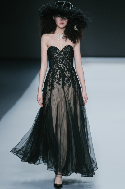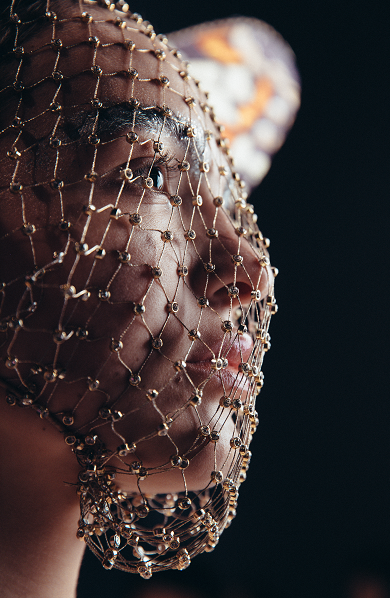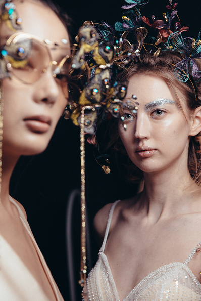 绚烂细腻的串珠演绎初生的朦胧姿态,凋谢的花朵蜕变新生为奇花异草,秀场深处,迷雾重重的神秘意境,模特头戴奇花配饰款款而行,夸张而妖治的花瓣,延伸成夸张的发饰,诉说着浪漫迷人的故事。