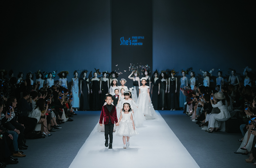 整场大秀接近尾声的时候, She’ s携手最in小麻豆压轴出场,上演一段萌翻现场的 MINI版 T台大秀,洒下一路天真烂漫……
