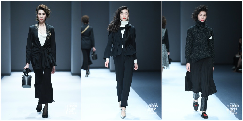 2019秋冬季新品,采用了很多新颖的面料,通过高亮度对比面料的拼接及夸张的版型设计手法给服装一种新的语言。设计风格简单别致,采用独特个性结构裁剪和优雅的垂线感设计,打造极致简约立体视觉廓形。设计中既有中国的传统元素,又可见欧洲的简约廓形。大胆创新的裁剪让服装呈现一种耐人寻味的意境。在前卫锐意的设计加持下,独立、个性的女性形象愈发清晰。