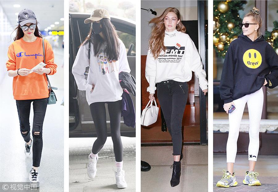 新华网2019年3月20日讯最近“带货王”杨幂持续营业再回街拍界,即使画质渣大家看着也很开心。明明已经是32岁的辣妈,总能穿出满满的少女感,卫衣+铅笔裤无论是作为内搭还是外穿简单青春。宽松的卫衣隐藏女性特征,紧身裤又能突显纤细长腿,杨幂这次2.0版的私服是再舒适不过的穿搭了。(图片来源:视觉中国)