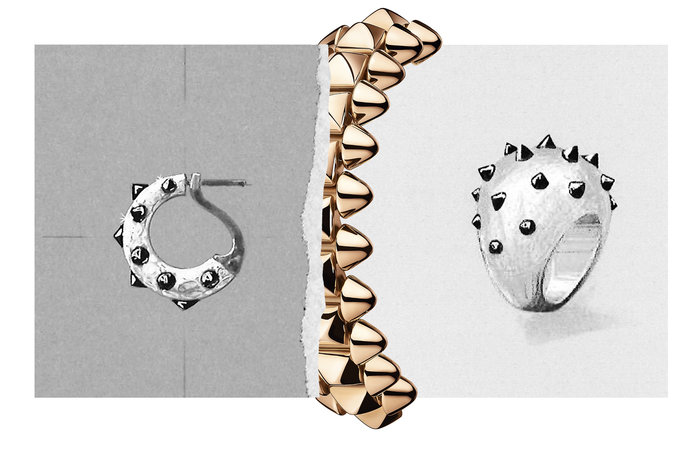 全新Clash de Cartier系列挑战卡地亚传统设计美学,大胆运用铆钉、圆珠和方形饰钉装饰,成就全新卡地亚标志性珠宝臻品。刚柔并济,是温柔内涵与刚毅个性的精妙平衡,是柔美优雅与潇洒自由的和谐相融。