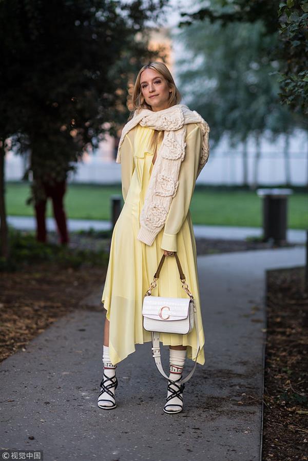 新华网2019年4月15日讯 春日街头百花争艳,外出游玩赏花踏青,面对高饱和度的自然美景,你需要做的是韬光养晦才更相得益彰,Pick春日街头再合适不过的清淡鹅黄色,不与百花争艳,做个清新柔美小仙女。(图片来源:视觉中国)