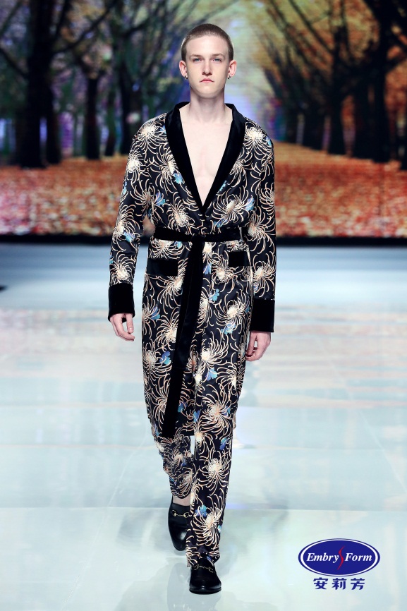 落叶知秋,梧桐叶的飘落预示着立秋的到来,从橙红到酒红的流行色将秋日里的舒缓宁静呈现出来,梧桐叶印花诗意诠释生命的静美与自信的力量。处暑时节,鹰乃祭鸟。凌厉展翅的雄鹰,勾画出一副极致刚劲的画面,色调间形成强烈的明暗对比,传递出男人的冒险天性。白露时节桂花飘香,极具国风韵味的桂花,写意泼洒在西方复古宫廷风款式之上,暗香浮动间呈现东方独有的儒雅诗意风格。