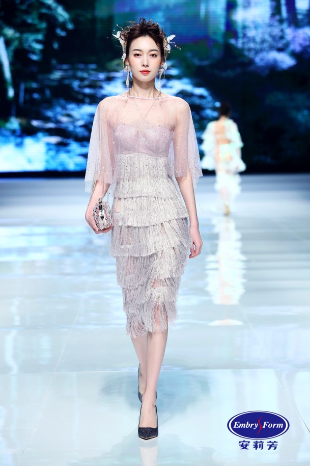 春水初生,春林初盛。安莉芳呈现了从万物复苏到繁花簇拥的春日花园,T台宛若花神走过,春意层层递进的浪漫情愫下,象征着Embry Form永恒优雅的主题。
