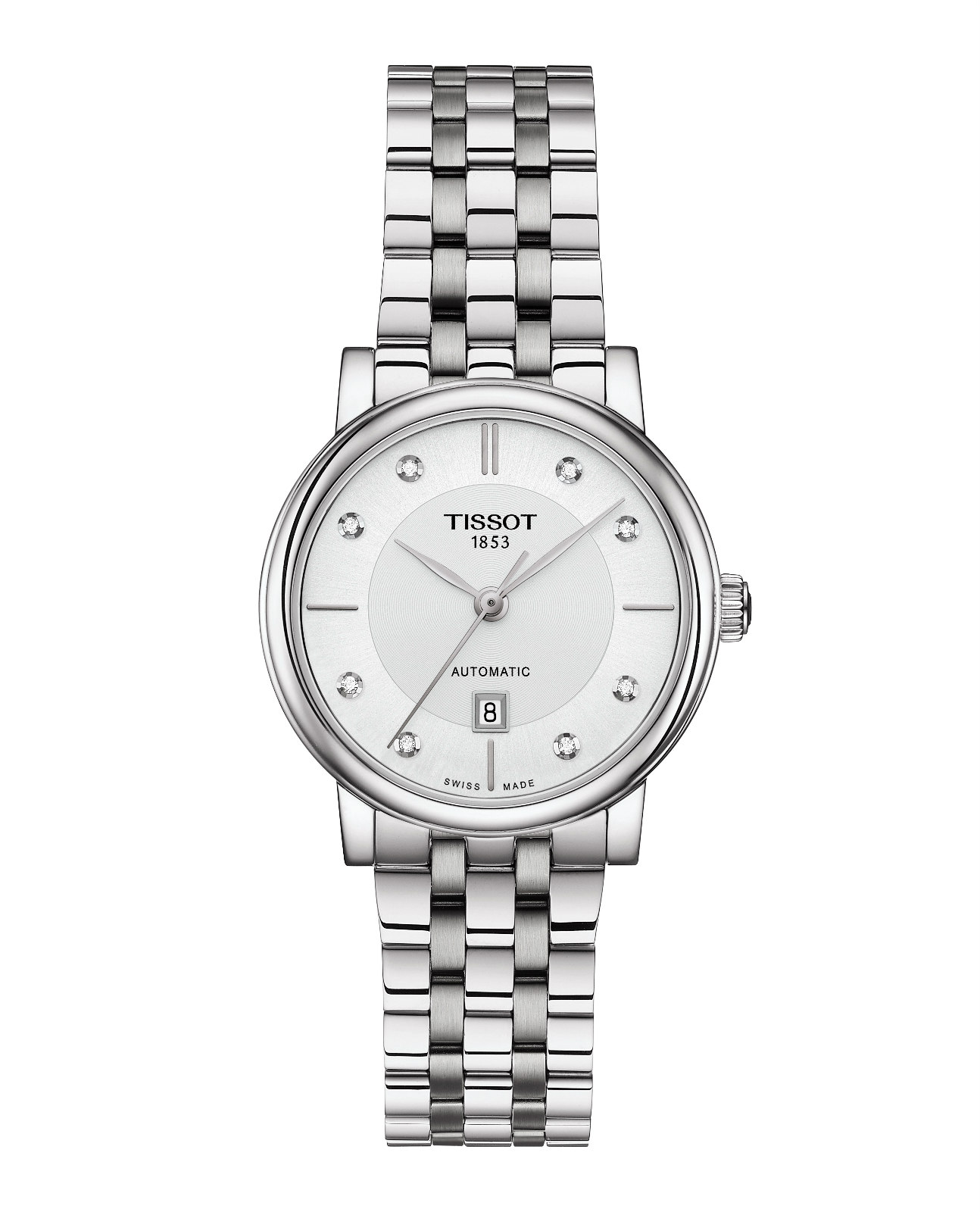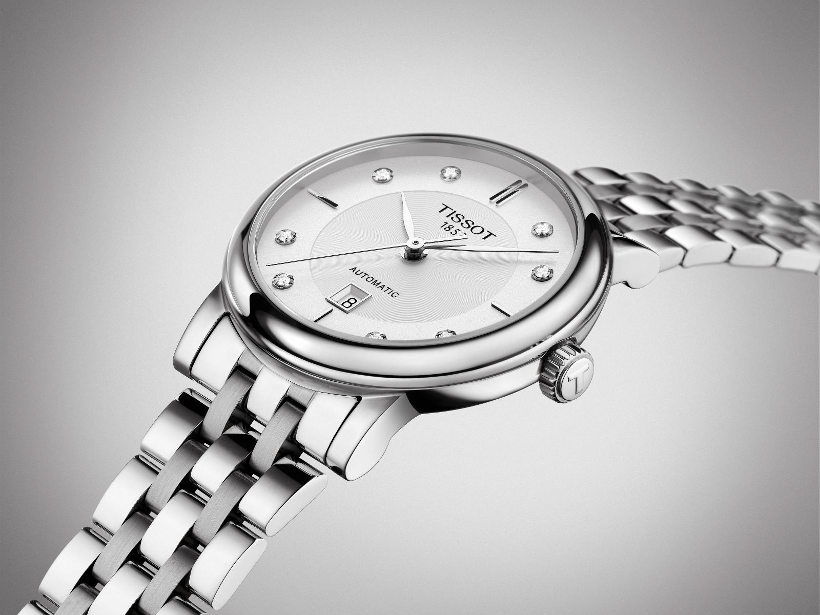 天梭卡森臻我系列女士腕表搭载自动上链机械机芯,以长时间的动力储存抒写品质与精准,外型简约典雅,表盘流线灵动优美,生动将职场妈妈的自信与品质流露于腕间,透明表后盖将机芯的精密运作展现得一览无遗,也成就了佩戴者无惧挑战、直面真我的非凡态度。30毫米的表径精巧玲珑,搭配八颗天然威赛尔顿钻石作为时标,奢华中彰显职场女性的不凡气质,也能恰如其分地体现身为人母的谦逊与典雅。一款腕表佩戴于腕间,便能自如应对不同风格造型、活动场合和人生阶段。