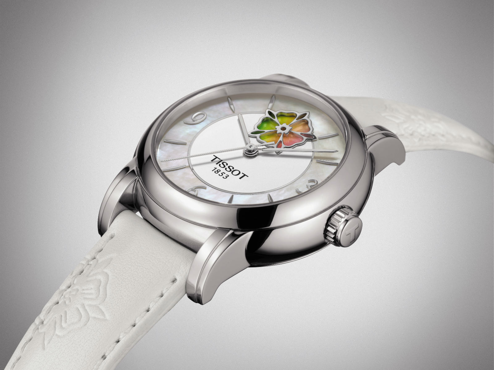 正如天梭家族徽章释义所言,“芳香和力量与我同在,我华丽之彩永世不隐”,无论时光如何流转,母爱的柔美与坚毅始终散发着永恒的光芒。该款腕表设计别具匠心、繁简得当,素净的珍珠母贝表盘与绚丽的彩虹玫瑰相得益彰,将现代女性的刚柔并济与绚丽柔情浓情演绎。在表盘12点的位置之上,彩虹玫瑰在日期变换中盛放出梦幻的颜色——红色恰似母爱的热烈,橙色恰似母爱的温和,黄色恰似母爱的灿烂,绿色恰似母爱的清新,青色恰似母爱的严厉,蓝色恰似母爱的理性,紫色恰似母爱的高贵,每一种颜色都诠释了母亲们的百变魅力、绚丽柔情。