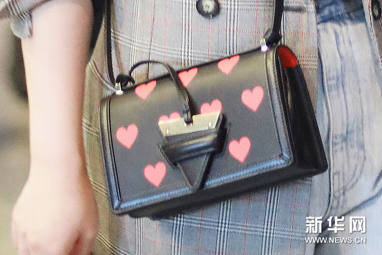新华网2019年5月16日讯 欧阳娜娜机场街拍。她头梳苹果头发型,身穿Off White花朵绿叶印花黑色条纹白色卫衣,下身穿牛仔短裤,挂紫色兔子毛绒玩具,脚踩Vans粉色帆布鞋,肩背Celine Classic Box白色单肩包,挂白色毛球挂饰。(图片来源:视觉中国)
