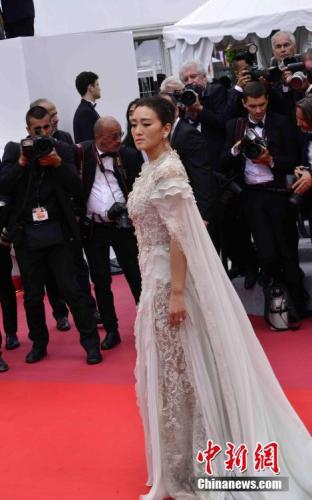 当地时间5月14日晚,著名演员巩俐亮相第72届戛纳电影节开幕式红毯。中新社记者李洋摄