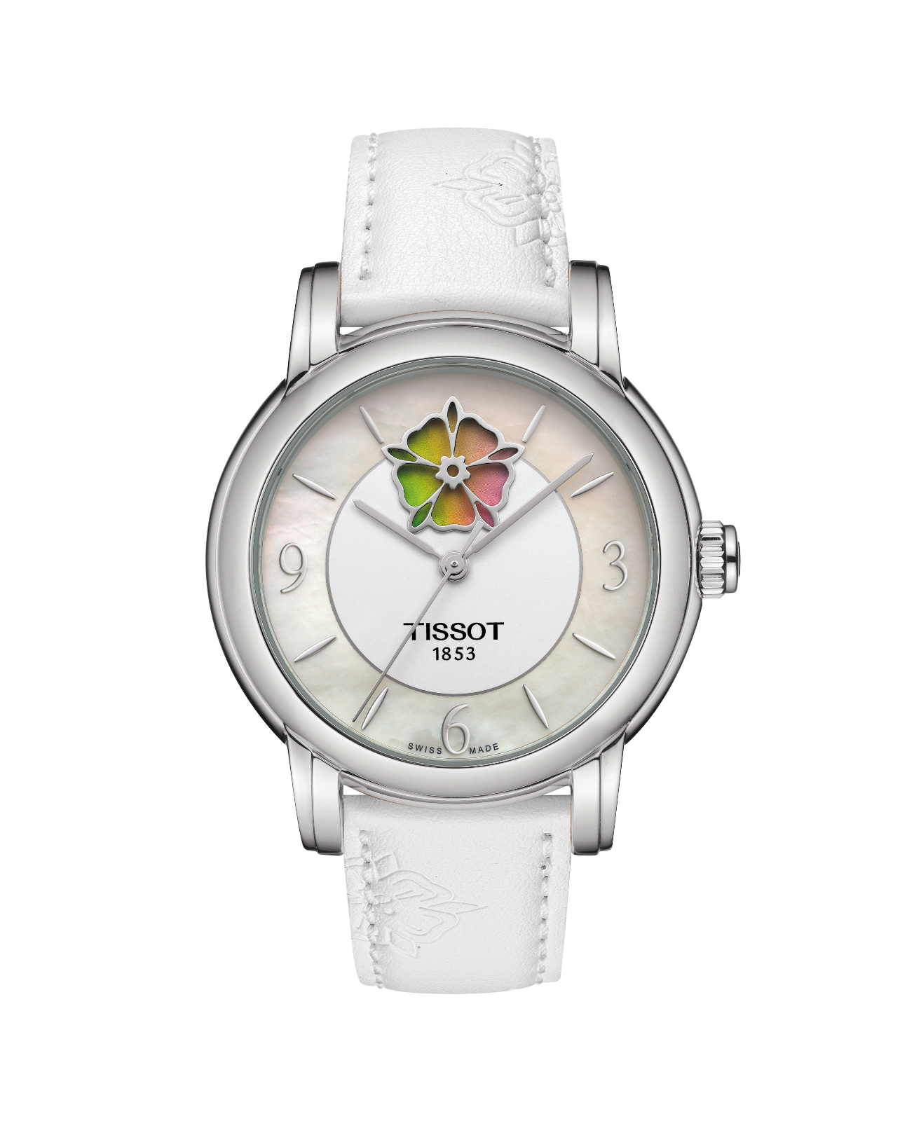 天梭心媛系列以雅致玲珑表盘间的彩虹玫瑰,叙述着夏季时节的斑斓心情,镂空玫瑰随时光流转渐次变换出梦幻色彩,尽展女性多面魅力。正如天梭家族徽章的释义:“芳香和力量与我同在,我华丽之彩永世不隐”,珍珠贝母材质表盘与绚丽的彩虹玫瑰相得益彰,繁简得当,衬托出万千柔美女性的恬静而笃定的内心。
