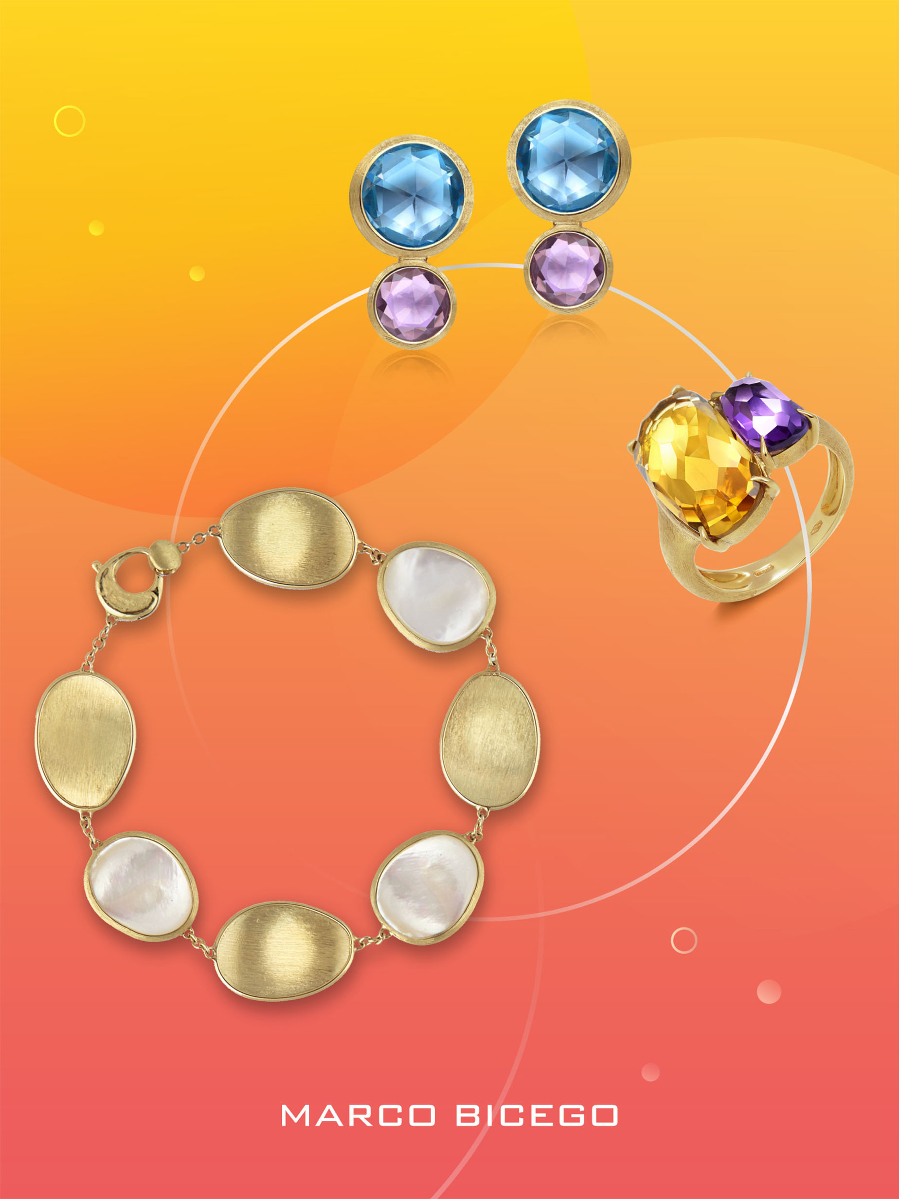 盛夏时节,万物被赋予活力和热情,碰撞出魅力十足的色彩盛宴。周生生携手意大利设计师珠宝品牌Marco Bicego,将斑斓的自然之色与奇幻瑰丽的宝石相互交织,渲染出夏季鲜亮轻快的明媚色彩。柔光四溢的白贝母、深邃醉人的蓝色托帕石、以及多彩绚丽的黄水晶和紫水晶等半宝石绮丽耀目,洋溢着活泼明快的动感韵律,在仲夏之际瞬间成为瞩目焦点。