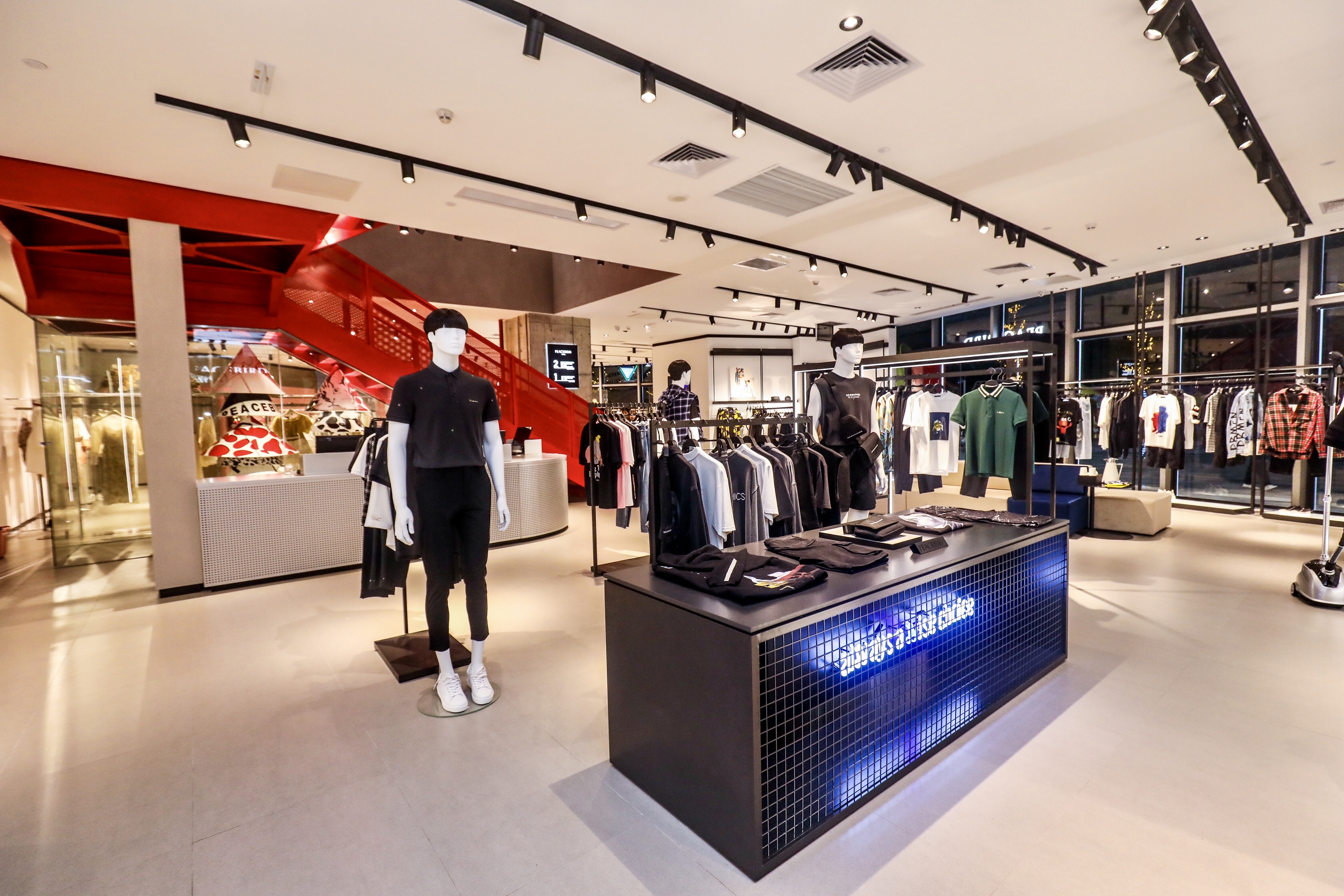 这家坐落于壹方天地“潮流品味先锋主场”B区的PEACEBIRD深圳集合店,400㎡全屏式落地窗设计符合当代潮流审美,1200㎡上下2层店铺空间均采用品牌最新一代店务形象,更集结旗下PEACEBIRD WOMEN太平鸟女装、PEACEBIRD MEN太平鸟男装、LEDIN乐町和生活方式品牌PEACEBIRD LIVIN’四大品牌,意满足新生代消费者的更多细分需求。
