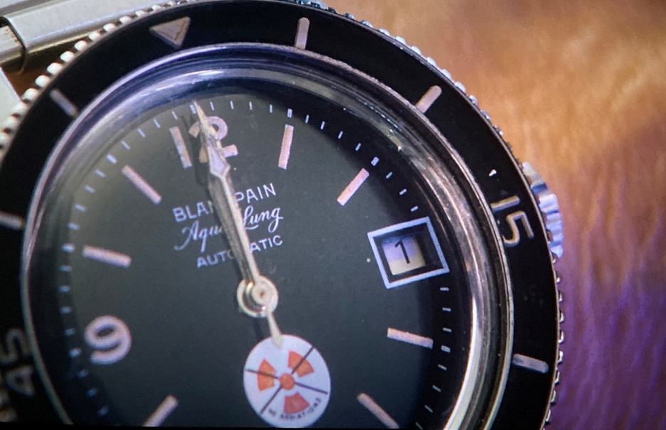 很多人可能会对电影中腕表表盘上的“ Aqua Lung”(水肺 )字样产生疑问——因为五十噚的绝大多数款式标记的都是“ Fifty Fathoms”(五十噚)。到上世纪五十年代,五十噚刚刚诞生的时候了。彼时五十噚因优良做工与先进设计,获得多国海军及科考团队的青睐。最先与宝珀合作的便是法国的尤贝尔突击队(Nageuers de combat),又称蛙人潜水部队,不过法国政府要求军用物资必须通过本国企业采购,因此本身也出售潜水器械的法国液化空气集团( Air Liquide)的分公司 Spirotechnique便成为不二之选。宝珀与之一拍即合,请该公司在当地代销五十噚,并使用其拥有的商标“ Aqua Lung”。