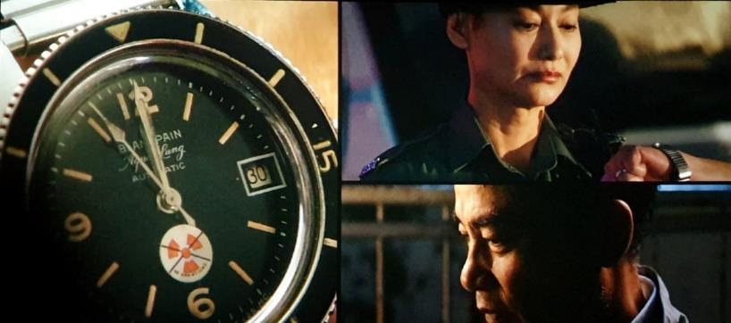 诞生于1952年、于1953年初正式投产上市的宝珀五十噚腕表是现代专业机械潜水表的鼻祖,而电影里惠英红饰演的香港高级督察佩戴的正是一块五十噚,与她身为警察的飒爽英姿很是相配。据考证,2015年在瑞士日内瓦的佳士得拍卖行成交的一款五十噚专业机械潜水腕表,最有可能是电影中腕表的同款——产于1965年,拥有宝珀标志性的专利锁定旋转表圈、12点位倒三角标记、大三针设计,还有清晰的三点位日期显示窗和六点位无辐射标识。宝珀五十噚系列的每一款腕表从诞生之初都采用对人体无害的无辐射夜光显示材料,而这款更是从设计上彰显了这一特质。