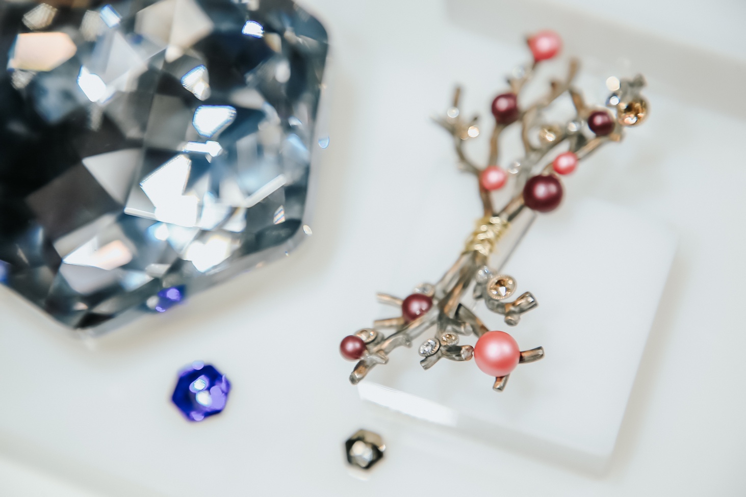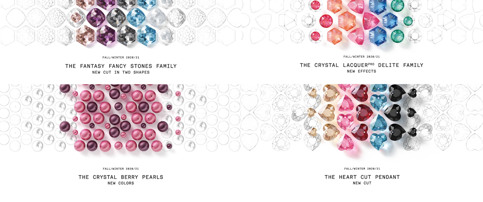 神秘而多变的桑莓红水晶珍珠和接骨木莓水晶珍珠的灵感取自于户外和大自然的馈赠。它们华丽的浆果色调强化了有机理念在数字化世界的设计中尤为重要的调剂作用。并可完美与闪彩效果以及其他水晶珍珠进行创意混合搭配。