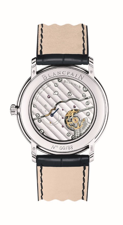 秉承着对顶级工艺和品质的坚持,全新宝珀Villeret经典系列超薄腕表精品店限量款具备了更高的可靠性能及运行效率。腕表搭载的11A4B手动上链机芯,由在业界著名的1150机芯基础上升级而成,配备了两个串联发条盒及高性能游丝,动力储存可达四天。尤其注重用户体验的宝珀,也为全新Villeret经典系列超薄腕表在表背配备了动力储存显示功能。优雅简洁的表壳与蓝宝石玻璃背透下精美雕饰的机芯形成视觉张力。经重新设计的夹板饰以传统日内瓦波纹图案,并进行了精细的倒角打磨处理。