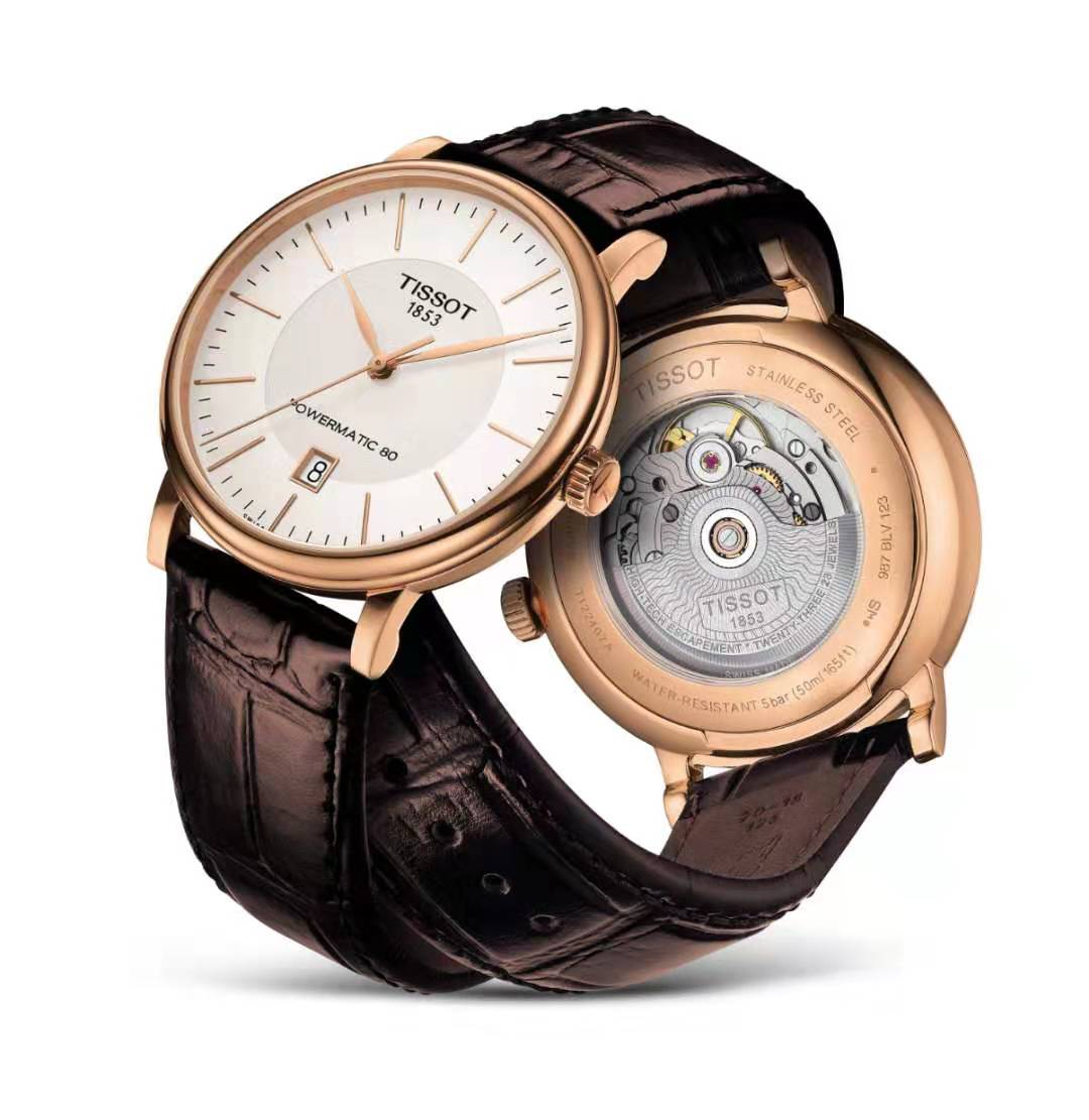 一元复始,万象更新交替,天梭卡森臻我系列在经典设计中加入都市潮流元素,以简约轮廓勾勒出传承百年的传承与创新。男士腕表搭载机械动力80机芯,其动力储存可达80小时,坚守在你身边,陪伴你度过来年的风雨。金色PVD镀层的精钢表壳洁净雅致,一抹光亮揉进表盘,诠释着新年伊始无畏前行的心愿。女士腕表则以精钢表壳搭配8颗威赛尔顿钻石,柔美优雅,表盘设计摩登却又彰显品质,透明表后盖可看到生生不息的时光跳动,伴您在探索2020年前行的道路上鸿运满年。