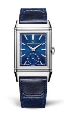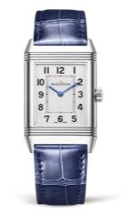 积家Reverso Classic翻转系列腕表沿袭了装饰艺术的经典美学设计和标志性的翻转设计,优雅的蓝色将精钢表壳和蛋白色表盘衬托地更加醒目,表盘外圈采用垂直缎面润饰,为向蛋白石中心过渡的分钟刻度巧妙留白。三个层次各有特色,相互辉映,为这款时计增添了立体感。留白的精钢表背定格光阴赠予的美好,见证人生中的每一次成长与蜕变。