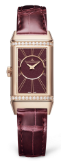积家Reverso Tribute翻转系列小秒针腕表。以简约纯粹的设计搭配魅力独具的酒红色表盘以及由知名皮靴制造商 Casa Fagliano设计的同色系明针缝线表带。饰以富有特色的装饰刻纹,配备太子妃形指针,手工镶贴时标,并在6时位置设有小秒针显示窗。遵循一贯的创作传统,腕表背面提供了个性化定制空间,供您自由挥洒无限创意。