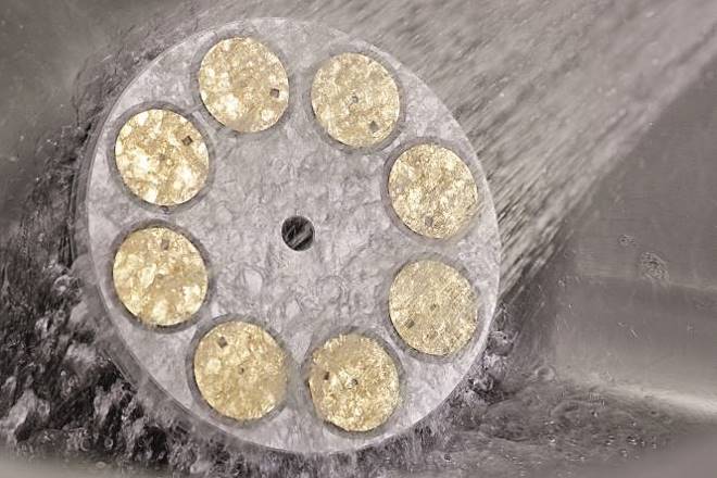 此时,可以开始表面处理过程。借助磨削和抛光机以及一种特制液体 (乳化液),表盘在接受打磨后,再被抛光至呈高光泽。这对于后续打造太阳纹是必不可少的前提条件,太阳纹则是通过垂直旋转的黄铜刷完成。