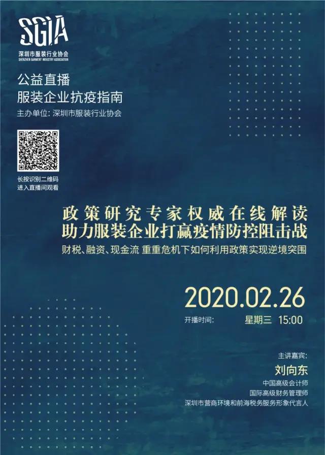 疫情发生以来,国家为帮扶企业,接连出台了多项惠企政策。但对于不少企业来说,理解和应用政策条款却不太容易。了解到企业的这一需求,深服协开展了公益直播系列《服装企业抗疫指南》,为大家答疑解惑。