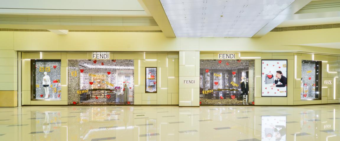 值此活动期间,FENDI将深圳万象城店铺妙手改造为妙趣横生、活力四射的涂鸦潮酷风格空间。墙体以黑白色手绘涂鸦为背景,插置黄色FENDI品牌字样、FF标识,以及红色爱心图案。色彩与图样碰撞,艺术与时尚交织,给人以极具视觉冲击力的同时也为浪漫的七夕增添了一抹别样的甜蜜感。