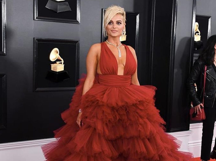 碧碧·雷克萨(Bebe Rexha)盛装出席61届格莱美奖。