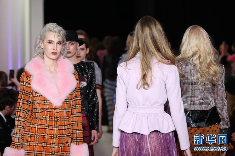 2月15日,在英国伦敦,模特在2019伦敦秋冬时装周上展示Bora Aksu品牌服饰。