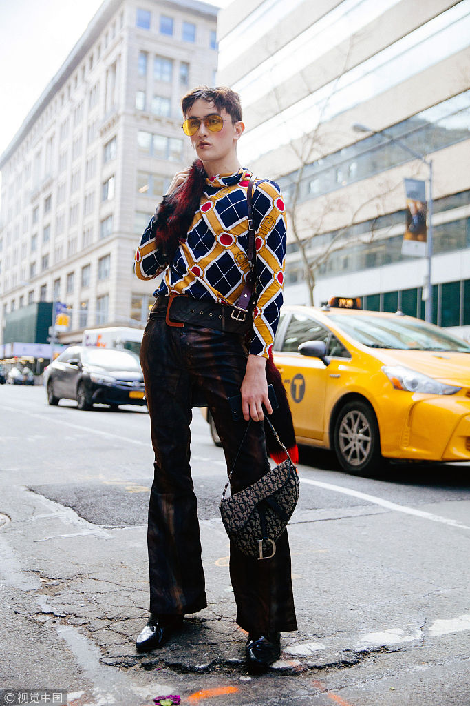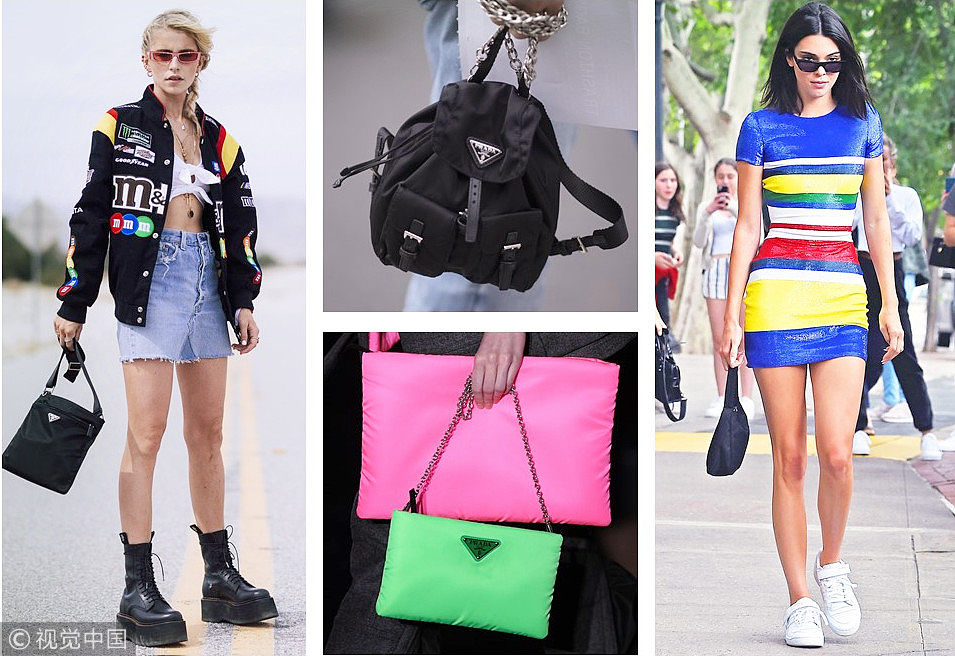 小编发现自打今年年初开始,欧美潮流圈的各路时髦精们一时间都开始团宠Prada的尼龙包,土酷古板的外形和中性的面料,怎么看都跟时髦不沾边,但是就是这么莫名其妙的迎来了自己的“第二春”!经典的Prada尼龙包的设计,其实非常简单实用,明显的Prada三角Logo,搭配看起来超级商务的全黑和正经的拉链设计,可以说是非常的中规中矩了,但是就是这样规规矩矩的设计,却意外和现在正火的街头风和复古风特别搭调,火遍大街小巷~ (图片来源:视觉中国)