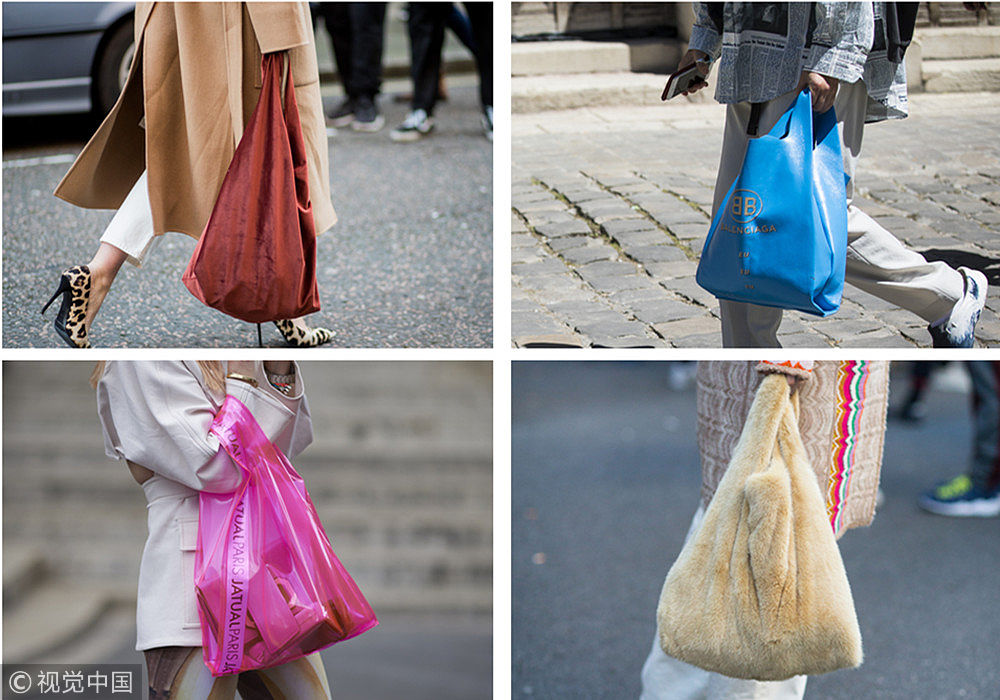 只要你想时髦,没有时尚圈做不到的。困扰环保问题的塑料袋如今换个材质进军时尚圈,挂耳式背心手拎包,简简单单佛系十足,不但装的多,简约轻便是超时髦,新的“菜篮子”买起来。Alexander Wang、Balenciaga、Simonetta Ravizza都有出品哦,换个材质身价倍增爱不释手。(图片来源:视觉中国)
