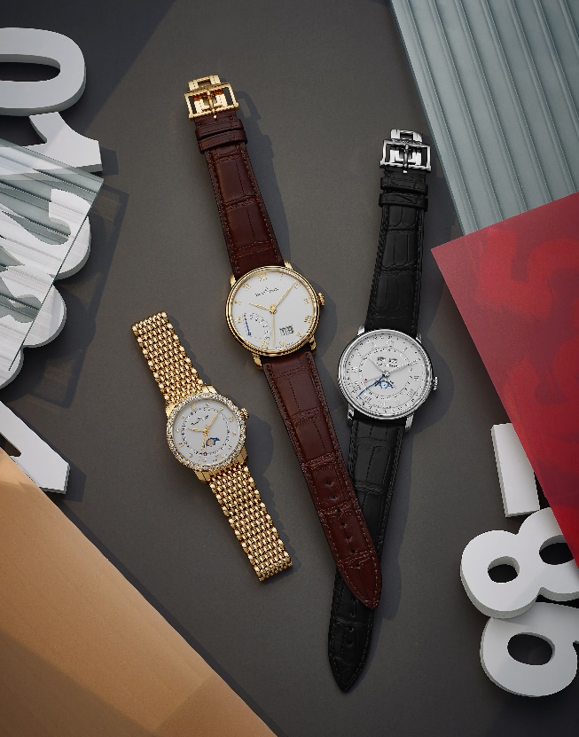 三枚外型相近、功能不同的宝珀 Villeret经典系列腕表并驾齐驱,宝珀的签名式美学元素跃然眼前:双层表圈、浮雕式罗马刻度、镂空柳叶指针、蓝钢蛇形指针,恰到好处地组合搭配,繁而不杂。两地时全历月相腕表是跨时区商务人士理想的出行伴侣;而拥有嘴角带有美人痣、神秘微笑的月亮美人腕表,是当代独立女性的浪漫选择。