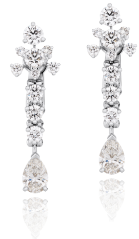 | De Beers戴比尔斯Lea钻石耳环 这款Lea钻石耳环的设计来自于山泉之水的形象,继承戴比尔斯珠宝一贯对于自然的尊敬与崇尚。耳环设计精巧细腻,逼真地再现了流动中的水滴所折射的耀眼光芒。 |