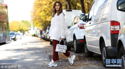 时尚博主街拍:毛衣+手袋+老爹鞋 简约靓丽
