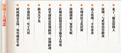 在深圳,提起十大观念,几乎家喻户晓、妇孺皆知。特别是那些曾和深圳风雨同舟、筚路蓝缕、一路走来的创业者更是如数家珍,津津乐道。可以说,每个观念都浓缩着激情燃烧的岁月,都见证着这座城市的发展历程。