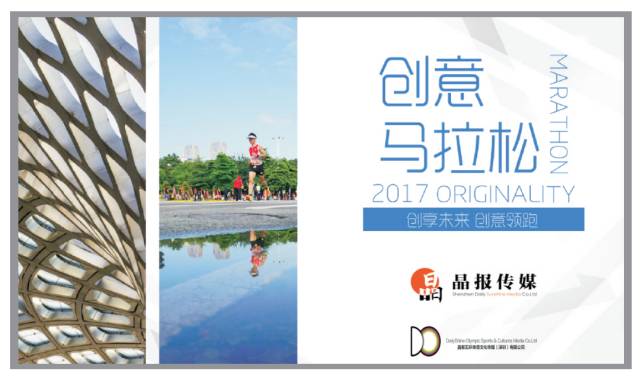 深圳报业集团、深圳晶报传媒有限公司携手晶报五环体育文化传媒(深圳)有限公司,拟策划和组织一场——创意马拉松。本次创意马拉松旨在打造“属于创客自己”的马拉松,全程12.7公里,拟于2017年12月7日“创意设计日”这天开跑,赛道设置在深圳创意产业园区附近。