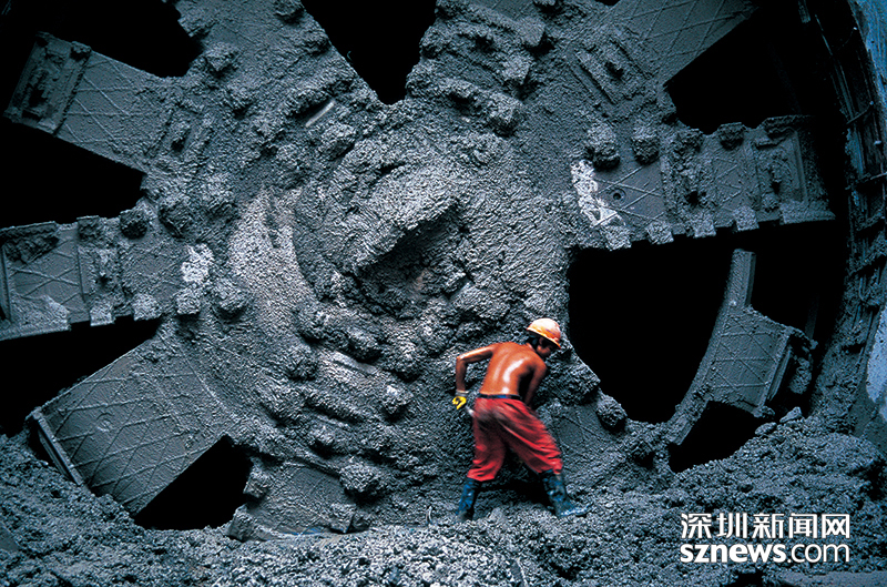 深圳地铁的建设离不开无数人的汗水,图中建设工人正在清理盾构机前的淤泥