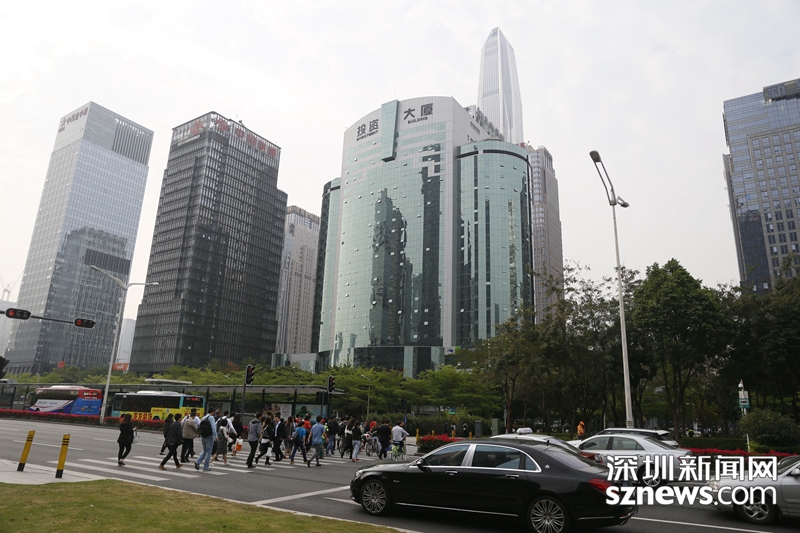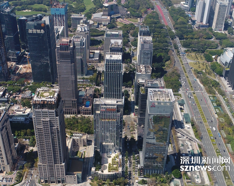 2018年3月,深圳新闻网无人机航拍已经建成的深圳中心区“13姐妹”楼群