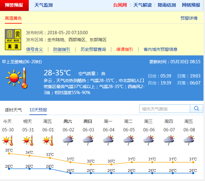 5月29日,深圳国家基本气象站记录到最高气温35.6℃,是今年以来的最高气温,也是1977年以来5月出现的最高气温,成为有气象记录以来的5月第2高值。昨日的最高温在梧桐村站测得,达38.9℃。