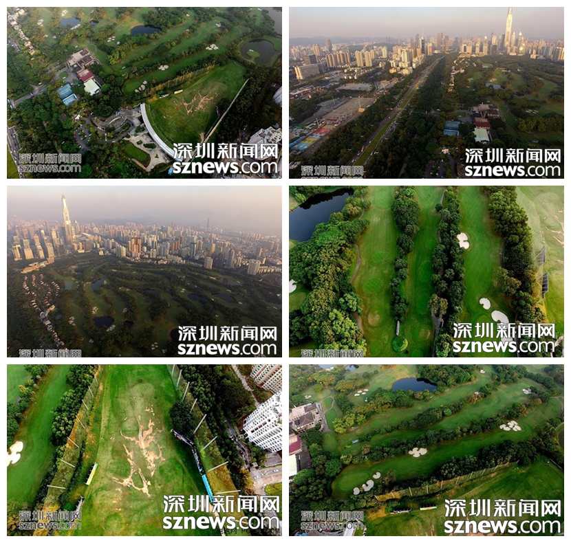 2015年10月16日,深圳新闻网无人机团队曾对此块用地进行了航拍。深圳高尔夫俱乐部球场,深圳经济特区第一个高尔夫球场,用地位于福田中心区深南大道与滨河大道之间,东邻新洲路,西距香蜜湖路。有人认为这座球场的存在,使得城市交通微循环被阻隔,但也因为这座球场的存在,深圳市中心得以保留一块巨大的绿肺,没有受到钢筋水泥侵蚀。