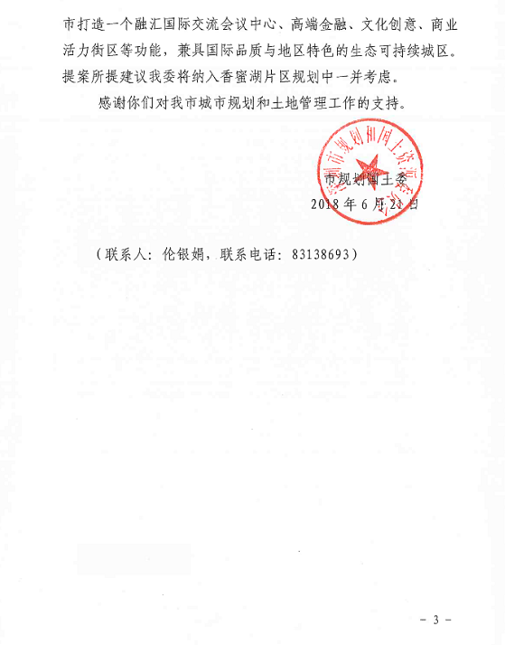 记者了解到,按照市政府要求,规土委正在组织开展香蜜湖片区城市设计国际咨询工作,咨询范围包括香蜜湖北、中、南三个片区。本次国际咨询旨在建立香蜜湖的新发展愿景,谋划新时代背景下的新主题,塑造未来城市品质与特色,通过对片区进行系统性设计,为市民提供一个绿色生态、开放共享、文化活力的城市公共场所,为深圳市打造一个融汇国际交流会议中心、高端金融、文化创意、商业活力街区等功能,间距国际品质与地区特色的生态可持续城区。政协委员提案所提建议,深圳市规土委将纳入香蜜湖片区规划中一并考虑。